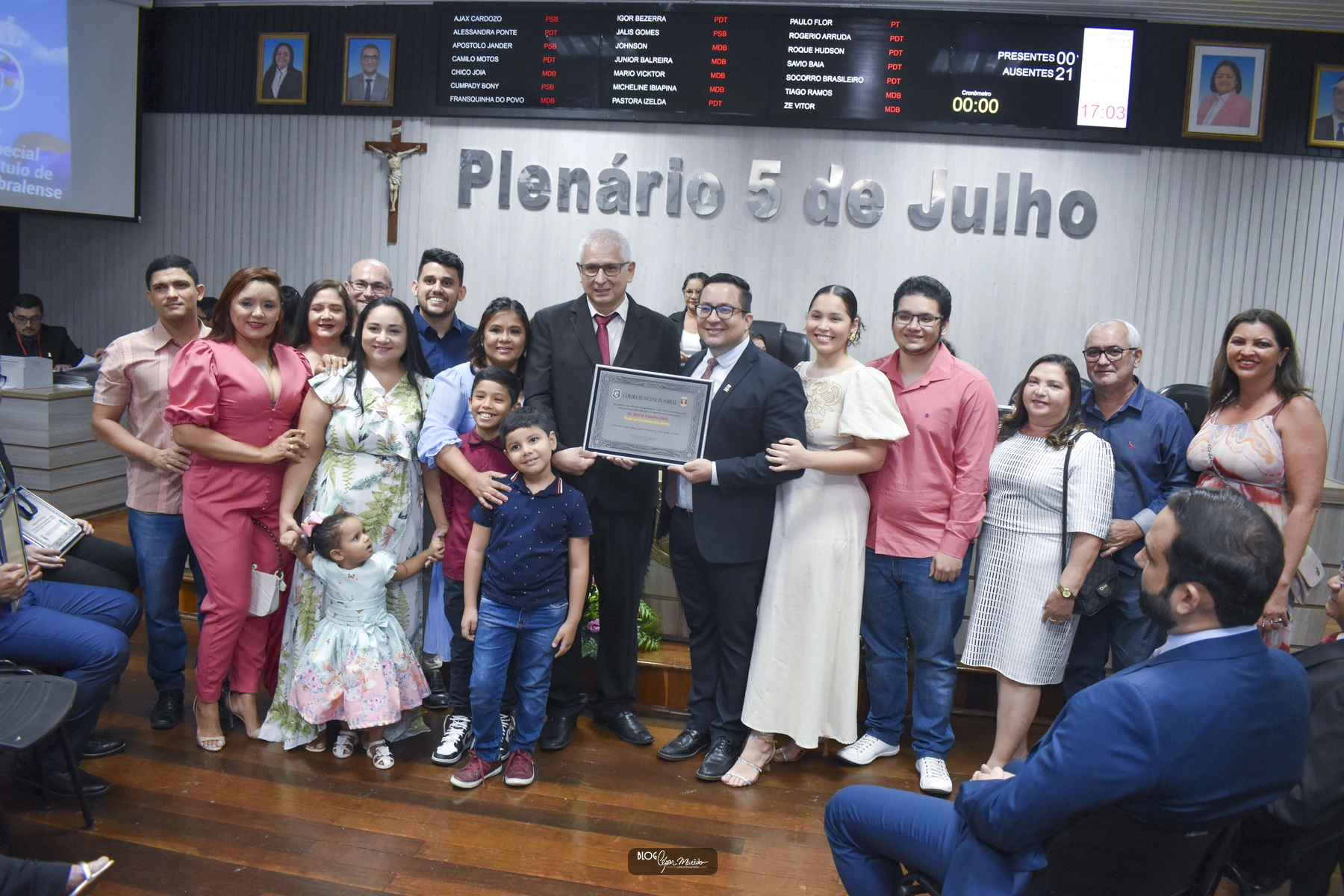Dentre os homenageados, Bosquinho Pinheiro que contou com a presença de seu pai, o empresário Bosco Pinheiro, sua esposa Márcia Jordana e seus filhos. Presente também os cunhados Lúcio, Ticiana e Joaquim Feijão, os gestores do Supermercado Pinheiro Silvia Portela e Lucas Paiva.