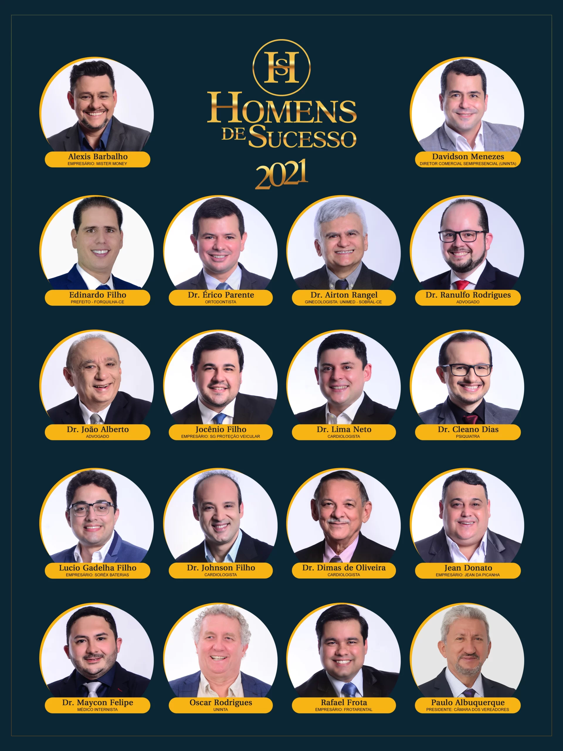 Conheçam os Homenageados por ordem alfabética para receber o Troféu Homens de Sucesso 2021.