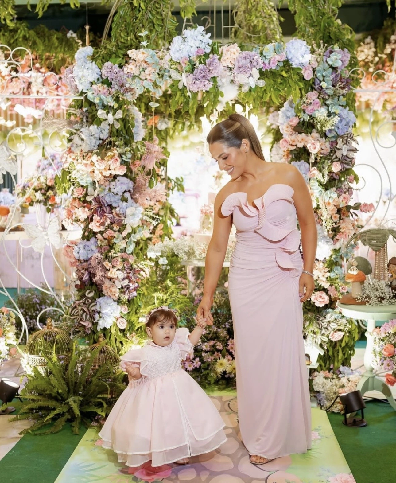 Filha de Karen Arcanjo e Pedro Nilo, a doce Florença foi homenageada com um encantador Jardim Secreto Sensorial, pensado em cada detalhe para despertar magia, delicadeza e afeto. O ambiente, repleto de cores suaves, flores e elementos lúdicos, proporcionou uma experiência única, onde o encanto da infância floresceu em cada cantinho.