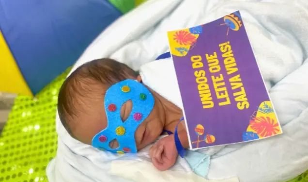 Entre pequenos adereços carnavalescos e olhares atentos das equipes e familiares, recém-nascidos internados no Hospital Regional Norte (HRN), unidade da Secretaria da Saúde do Ceará (Sesa) em Sobral, participaram, nesta quinta-feira (5), de um ensaio fotográfico temático. Promovido na Unidade de Cuidado Intermediário Neonatal Canguru (UCINCa), a ação levou leveza ao ambiente e transformou o cuidado em um registro de afeto. Mais do que celebrar a data, a iniciativa buscou sensibilizar a população para um gesto que salva vidas todos os dias: a doação de leite humano.
