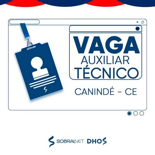 A SobralNet disponibiliza de vagas de emprego de “Vendedor Interno para Sobral-CE”, e “Auxiliar Técnico para Canindé-CE”.