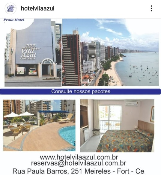 Fico feliz com mais essa parceria com o conceituado Vila Azul Praia Hotel, que fica localizado na Rua Paula Barros, 251 – Meireles, próximo a beira mar, no coração da cidade de Fortaleza-Ce.
