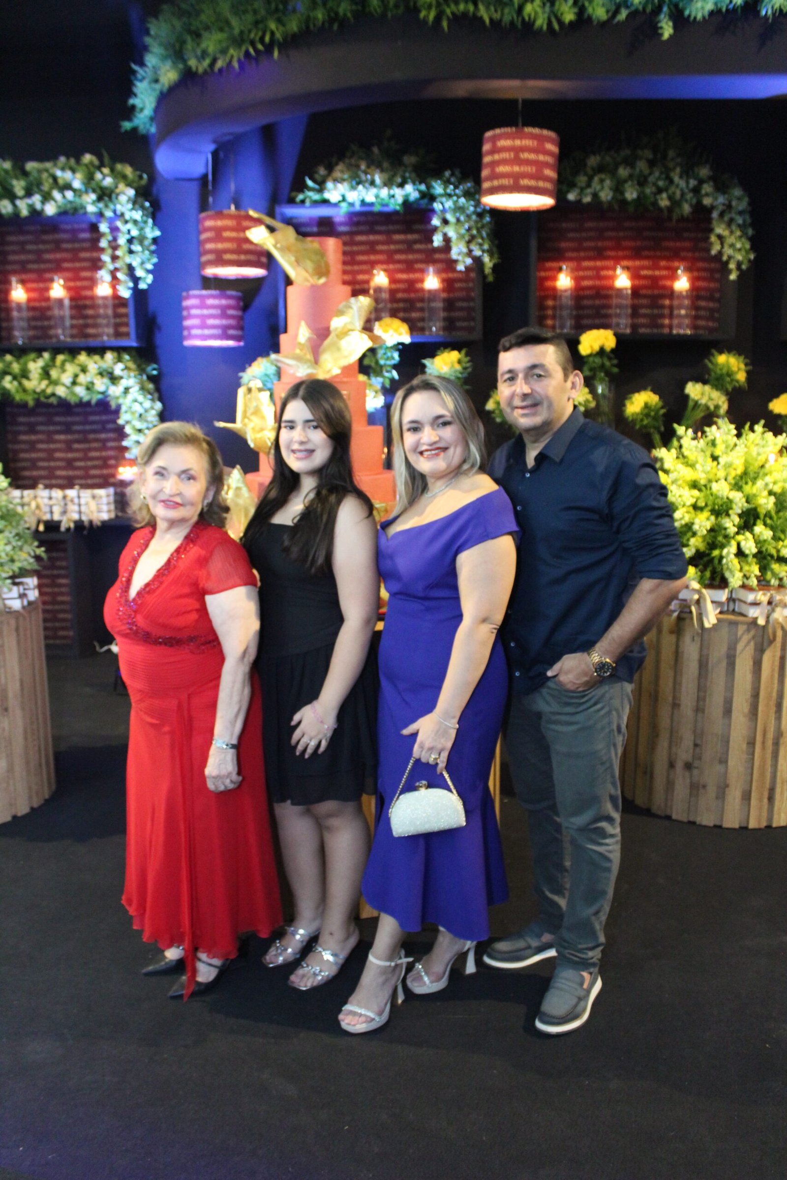 Os detalhes da festa foram cuidadosamente registrados por Rykê Fotografia e Caburé Will Filmagens, eternizando cada instante de glamour. A iluminação e sonorização da DBOA criaram cenários de destaque para o palco e áreas de convivência, enquanto o bolo e os doces da Kelviane acrescentaram um toque de requinte que encantou todos os presentes.