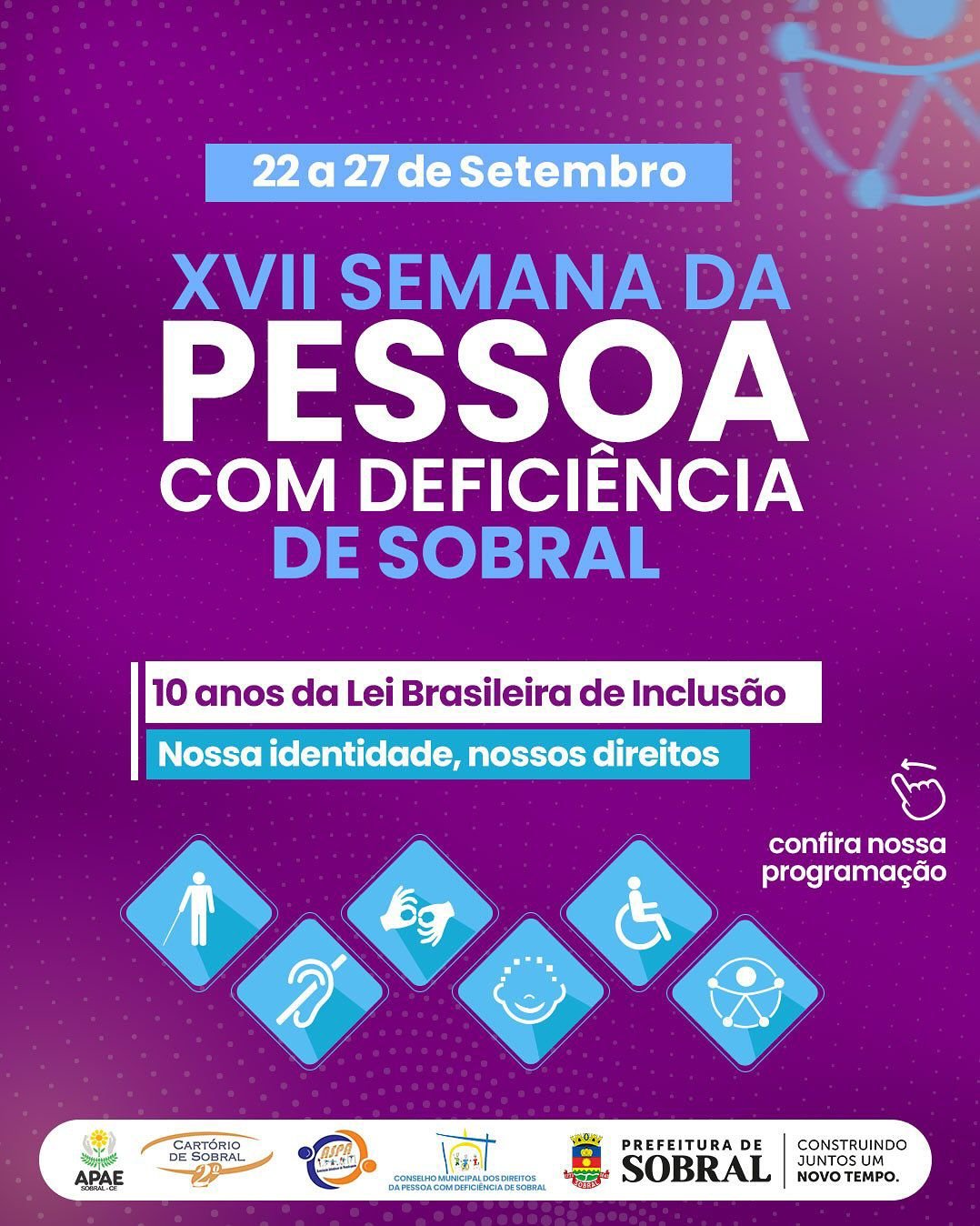 De 22 a 27 de setembro de 2025, Sobral será palco da XVII Semana da Pessoa com Deficiência, um momento de reflexão, diálogo e fortalecimento dos direitos conquistados ao longo dos anos.