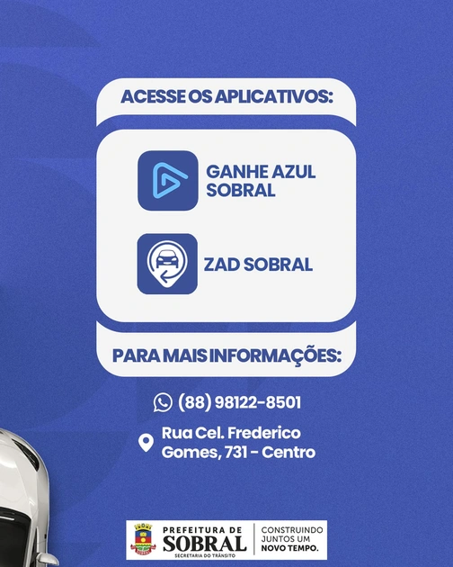 As tarifas de zona azul podem ser adquiridas pelos aplicativos digitais “Zad Sobral” e “Ganhe Azul Sobral”.